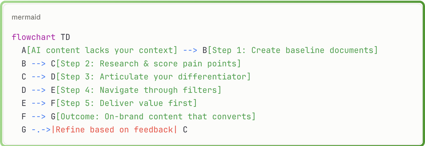 Output only the Mermaid code block.The AI will produce a code block like this: